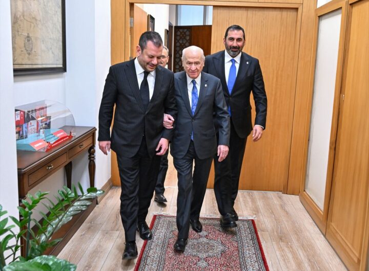 Trabzonspor Kulübü Başkanı Ertuğrul Doğan, Milliyetçi Hareket Partisi (MHP) Genel Başkanı Devlet Bahçeli’yi makamında ziyaret etti. Bordo-mavili...