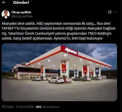 Gazeteci Olcay Aydirek’in yaptığı paylaşıma göre, Türkiye’deki akaryakıt devi Aytemiz’in satışı gerçekleşti. Aydirek, gelişmeyi şu sözlerle duyurdu: