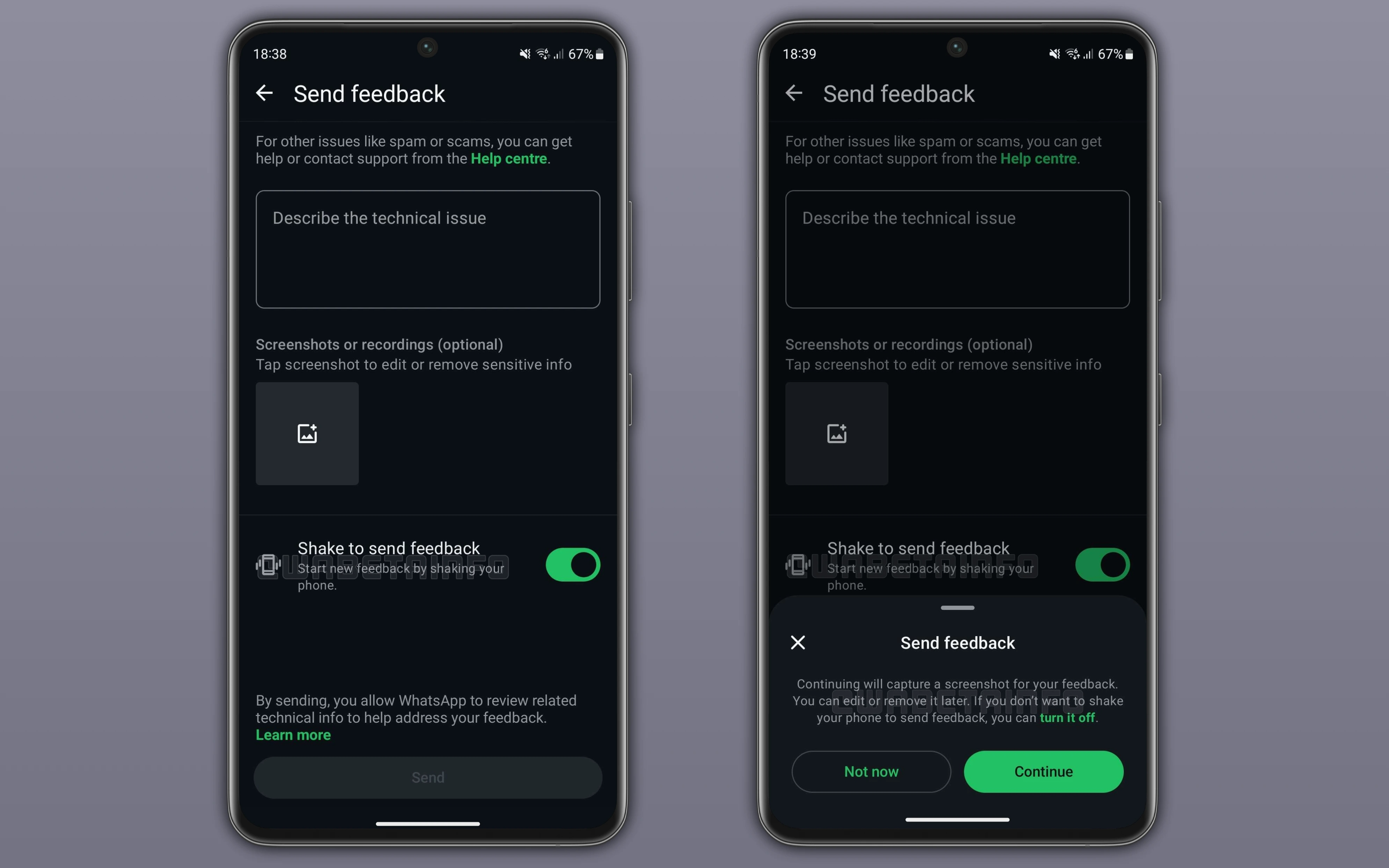 Yeni sallayarak bildirme özelliği, kullanıcıların sorun bildirme formunu anında açmasına olanak tanıyacak. Kullanıcı, telefonunu salladığında sorun bildirmek isteyip istemediğini soran bir ekran açılacak. Onayın ardından, WhatsApp otomatik olarak ekran görüntüsü alacak ve sorunu açıklayan bir form açacak. Kullanıcı, eklemek istemezse ekran görüntüsünü kaldırabilecek. Gizliliği korumak için, profil fotoğrafları gibi hassas kısımların ekran görüntüsü alınmayacak.